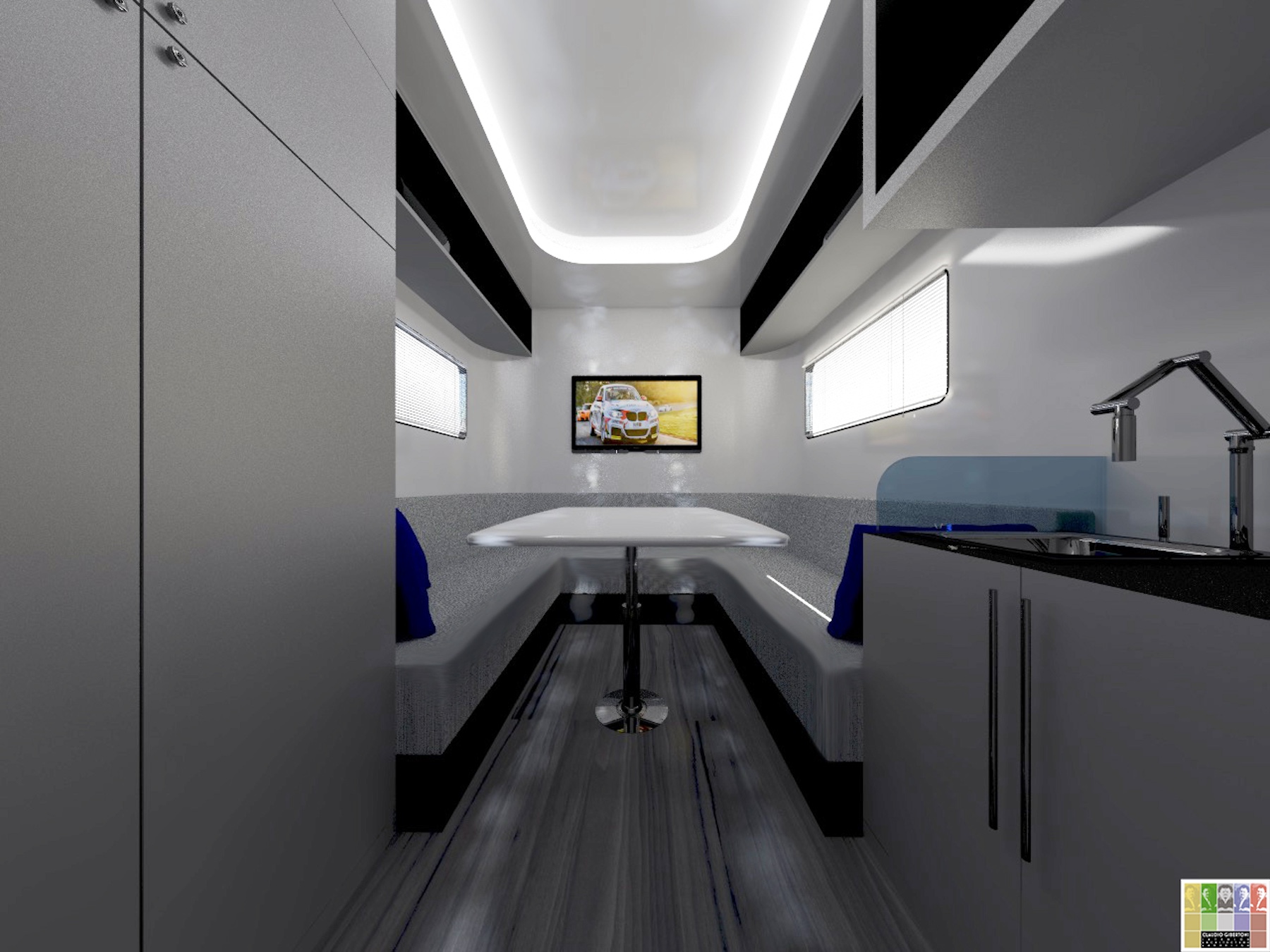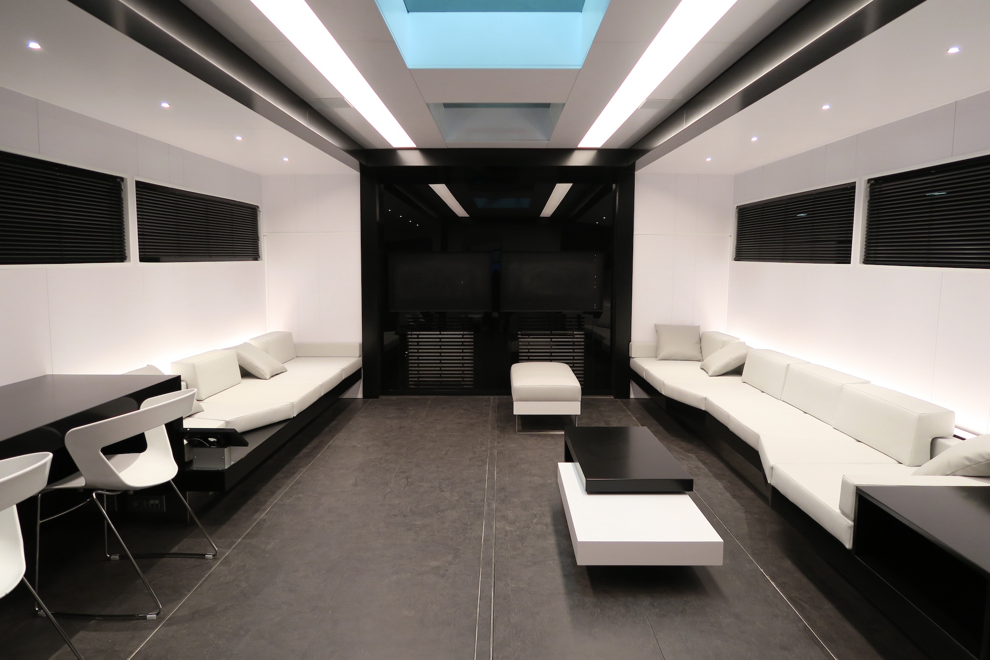 Today, in addition to the construction of tailor-made semi-trailers, a global experience is offered to the customers with a wide range of products aimed at the professionals of the motorsport such as walling systems, awnings, flight cases etc.